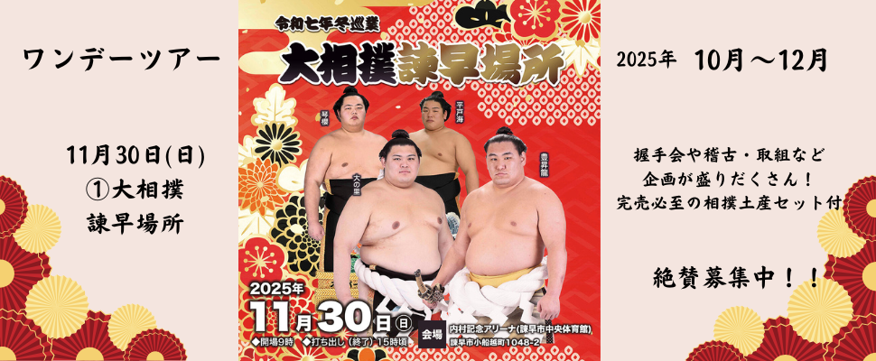 | ☆11/30(日)出発『大相撲 諫早場所』観戦ツアー☆ | ||